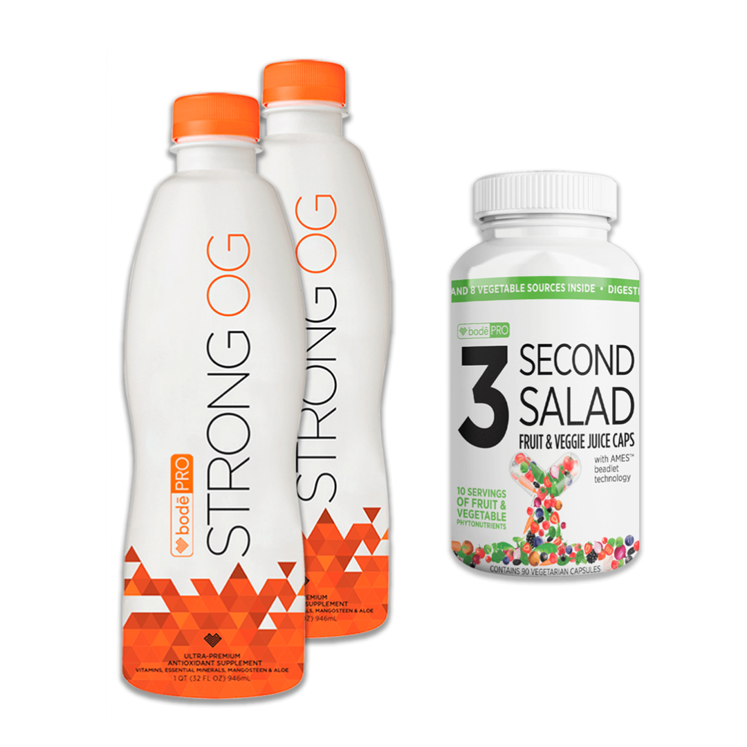 Our Cellular Pack OG combines the power of 10 servings of fruit & vegetable phytonutrients, 72 essential minerals, and potent digestive enzymes with the clinically studied power of Strong OG, the original liquid immune booster packed with 12 essential vitamins, over 65 plant-sourced minerals, whole-fruit mangosteen, organic glyconutrient-rich aloe vera, and organic decaffeinated green tea for the ultimate nutritional foundation.*